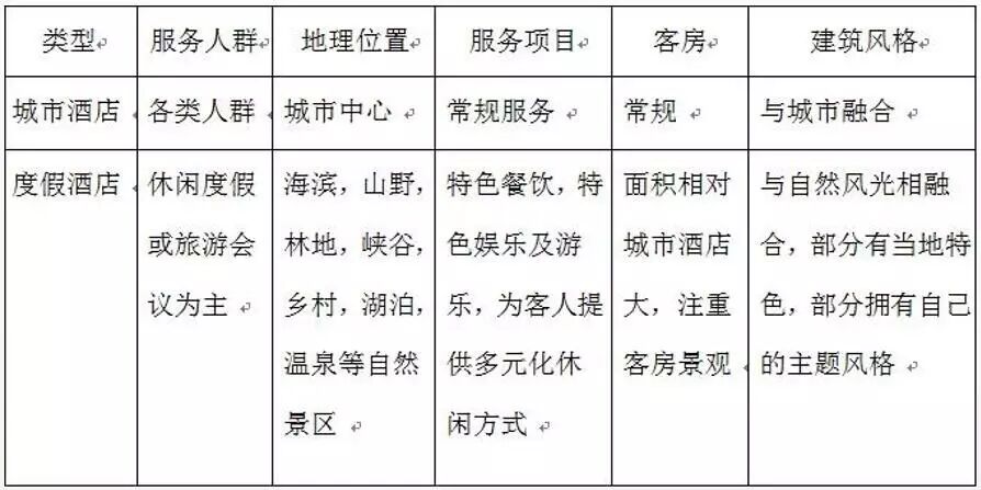 为了能更好的理解度假酒店与传统城市酒店的区别,见下表。